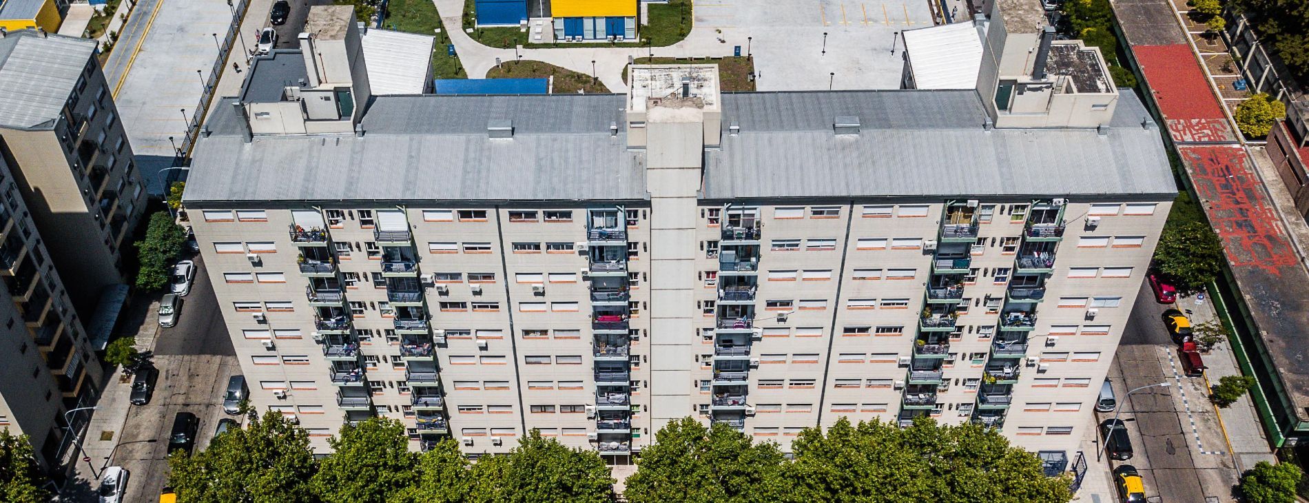 Se trata de un edificio en propiedad horizontal de perímetro libre que conforma un conjunto habitacional de 153 viviendas, ocupando media manzana. La construcción de esta nueva obra incluye tareas de movimiento de suelos, fundaciones y estructura de hormigón armado, instalaciones complementarias, cubierta metálica, infraestructura. La obra tiene una superficie cubierta de 12.700 m2 y se desarrolla con frente hacia Av. Alte. Brown y las calles laterales Arzobispo Espinosa y 20 de Septiembre. Sobre la Avenida cuenta con subsuelo de servicios, planta baja y 9 pisos, y sobre las calles laterales, con planta baja y 6 pisos.
